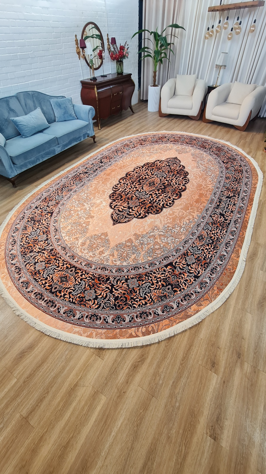 فرشینه بیضی فرشینه آفتاب کدB43مخمل شانل ترک استپدار