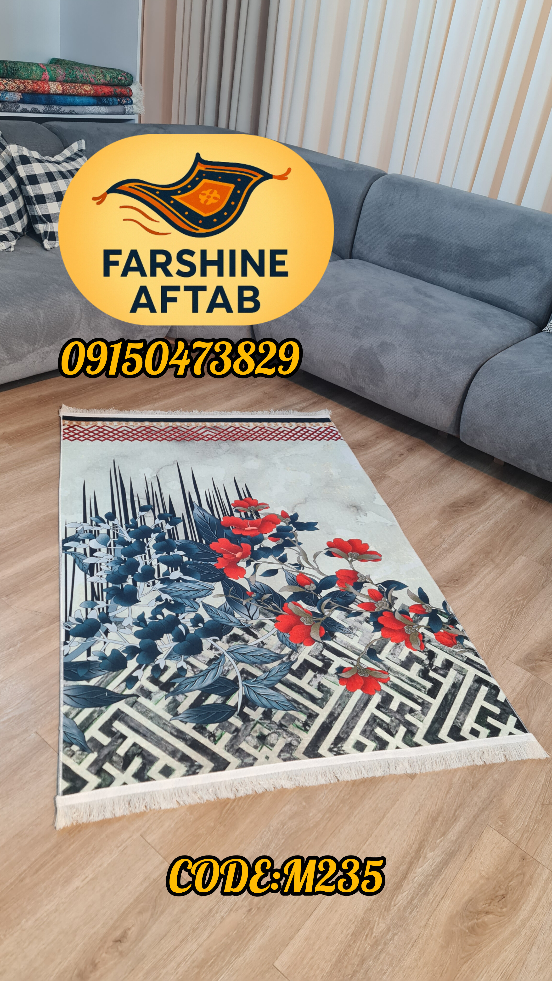 فرشینه فانتزی فرشینه آفتاب کد M235مخمل شانل ترک استپدار