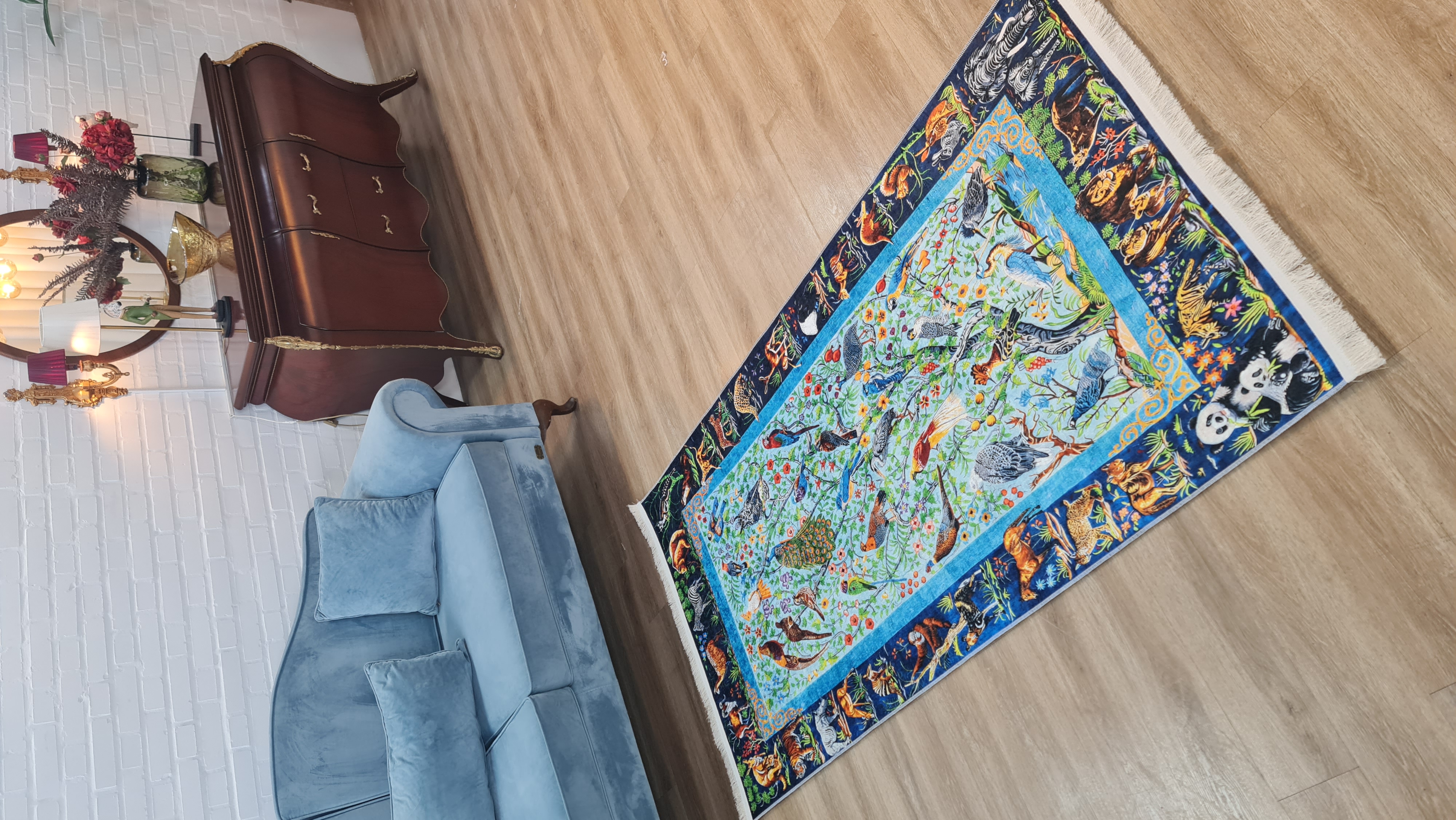 خرید ارزانترین فرشینه سنتی فرشینه آفتاب کد U463مخمل شانل ترک استپدار