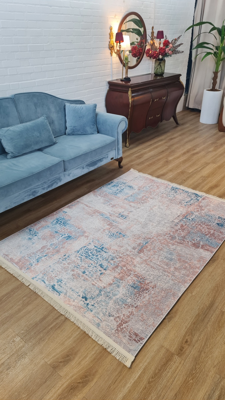 خرید آسان فرشینه فانتزی وینتیج فرشینه آفتاب کد M200مخمل شانل ترک استپدار