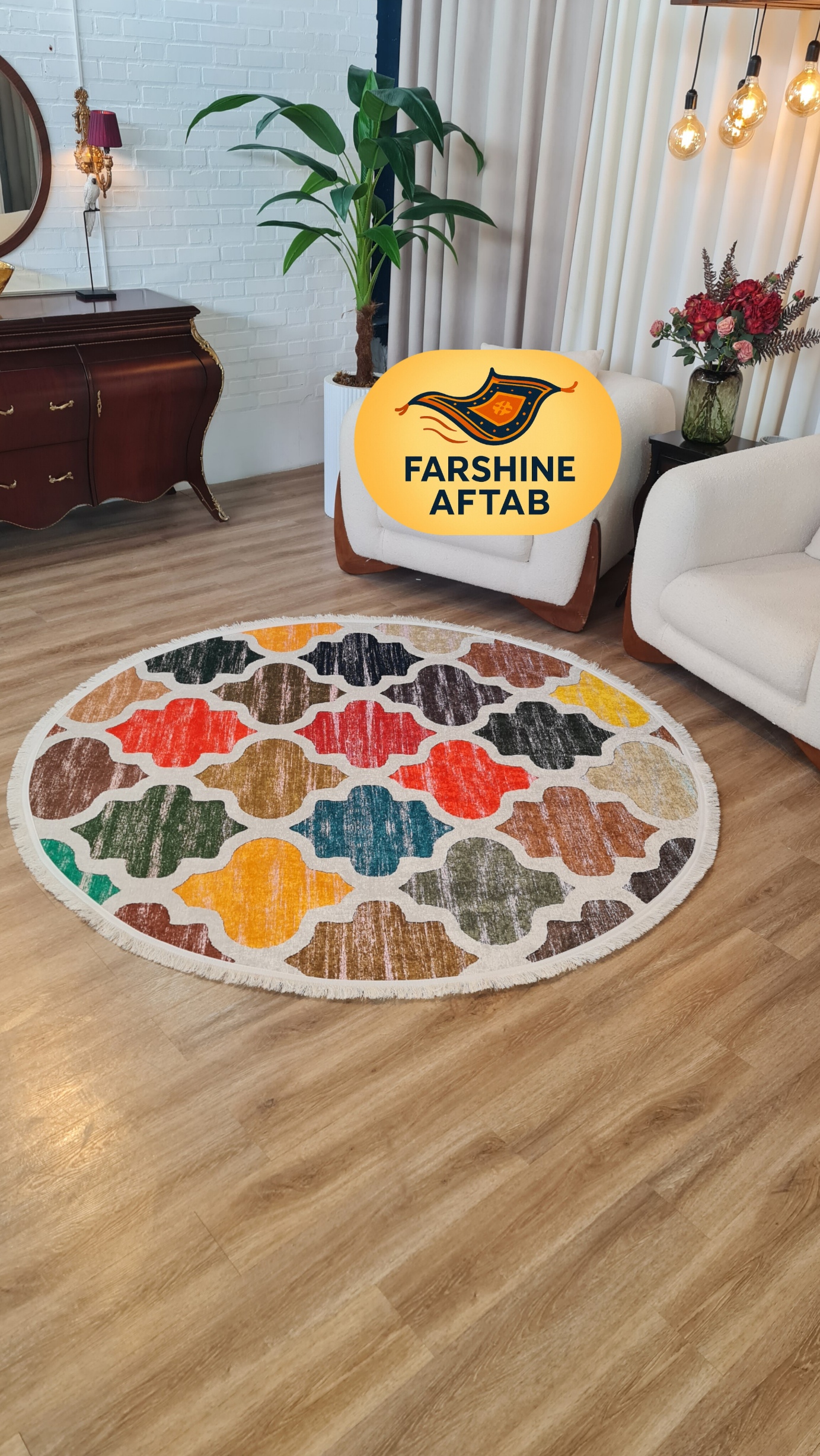 خرید آسان فرشینه آفتاب مدل گرد کدC21 مخمل شانل ترک استپ دار