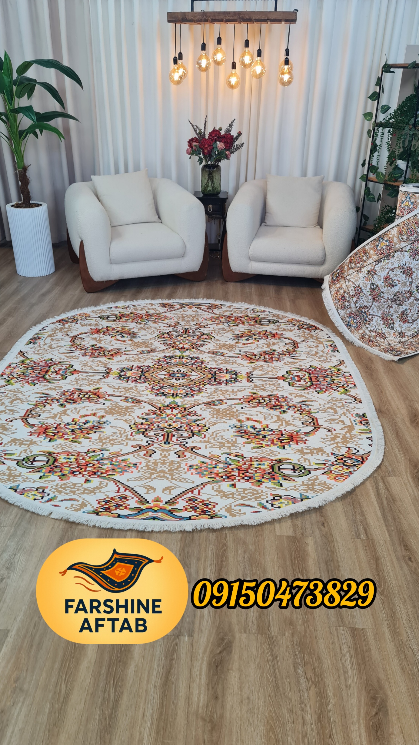 فرشینه آفتاب مدل بیضی کدR166مخمل شانل ترک استپدار